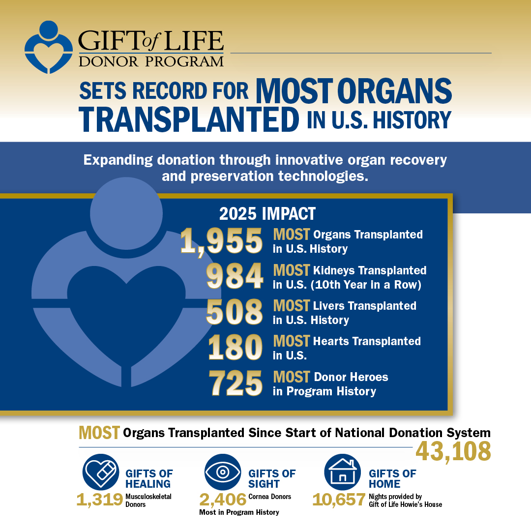 Gift of Life Sets National Record for Most Organs Transplanted in U.S. History