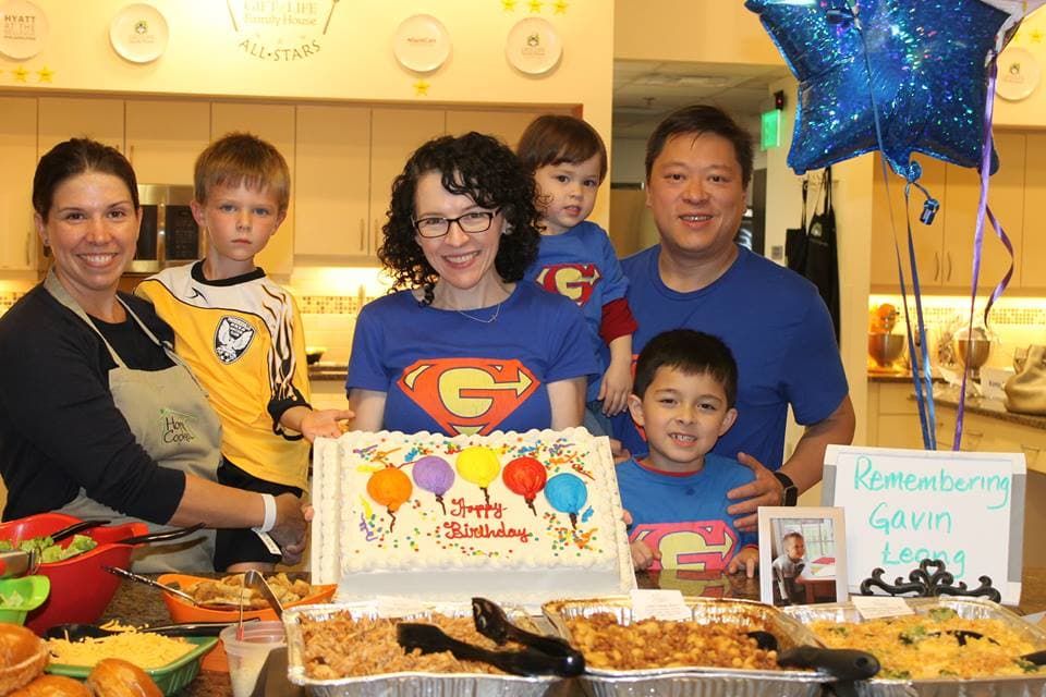The Leong Family serves dinner for guests at Gift of Life Howie's House through the Home Cook Heroes Program