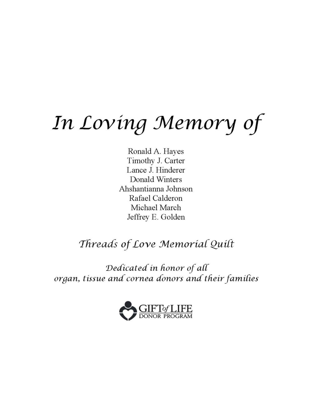 Threads of Love Memorial Quilt