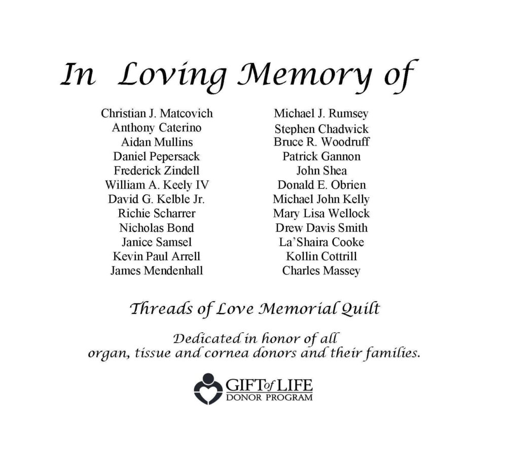 Threads of Love Memorial Quilt